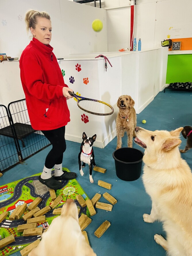 Womble has been enjoying socialising and playing games at Suffolk Canine Creche, an important part of his training for socialisation and more.